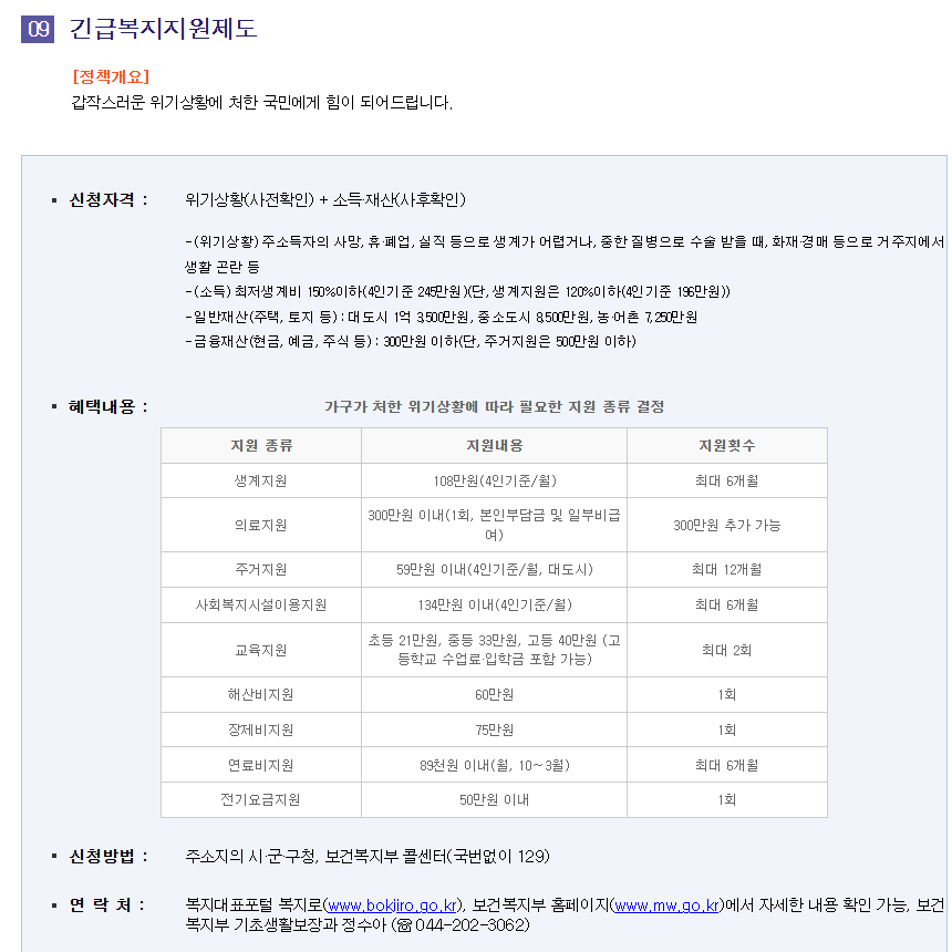 | 긴급생활지원금 | 기초생활수급자, 차상위계층, 저소득층 | 가구 소득 기준 중위소득 75% 이하(지자체별 차이 있음) |