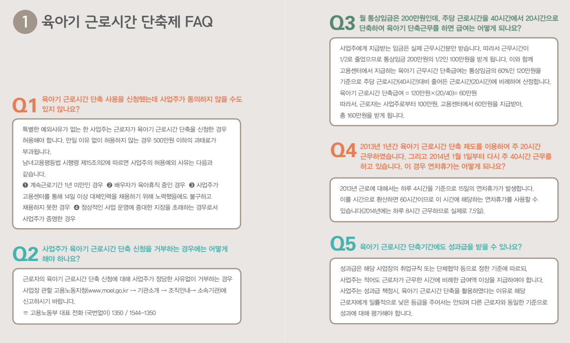일하는 부모를 위한 육아기 근로시간 단축제 가이드북: korea.kr