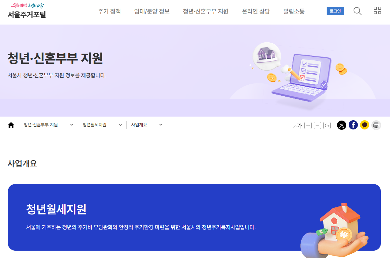 서울시 청년 월세지원 사업은 주거비 부담을 줄여 청년들의 경제적 자립을 돕는 지원 정책입니다. 일정 소득 기준 이하의 청년들에게 최대 10개월 동안 월 20만 원의 월세를 지원합니다.