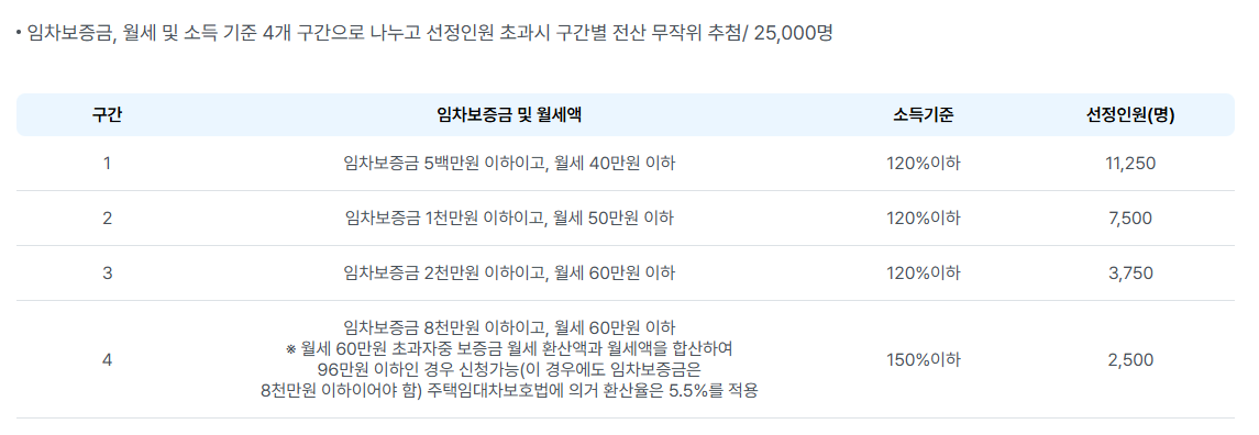 - 월세 60만 원 이상 주택 거주자는 지원 대상에서 제외됩니다.