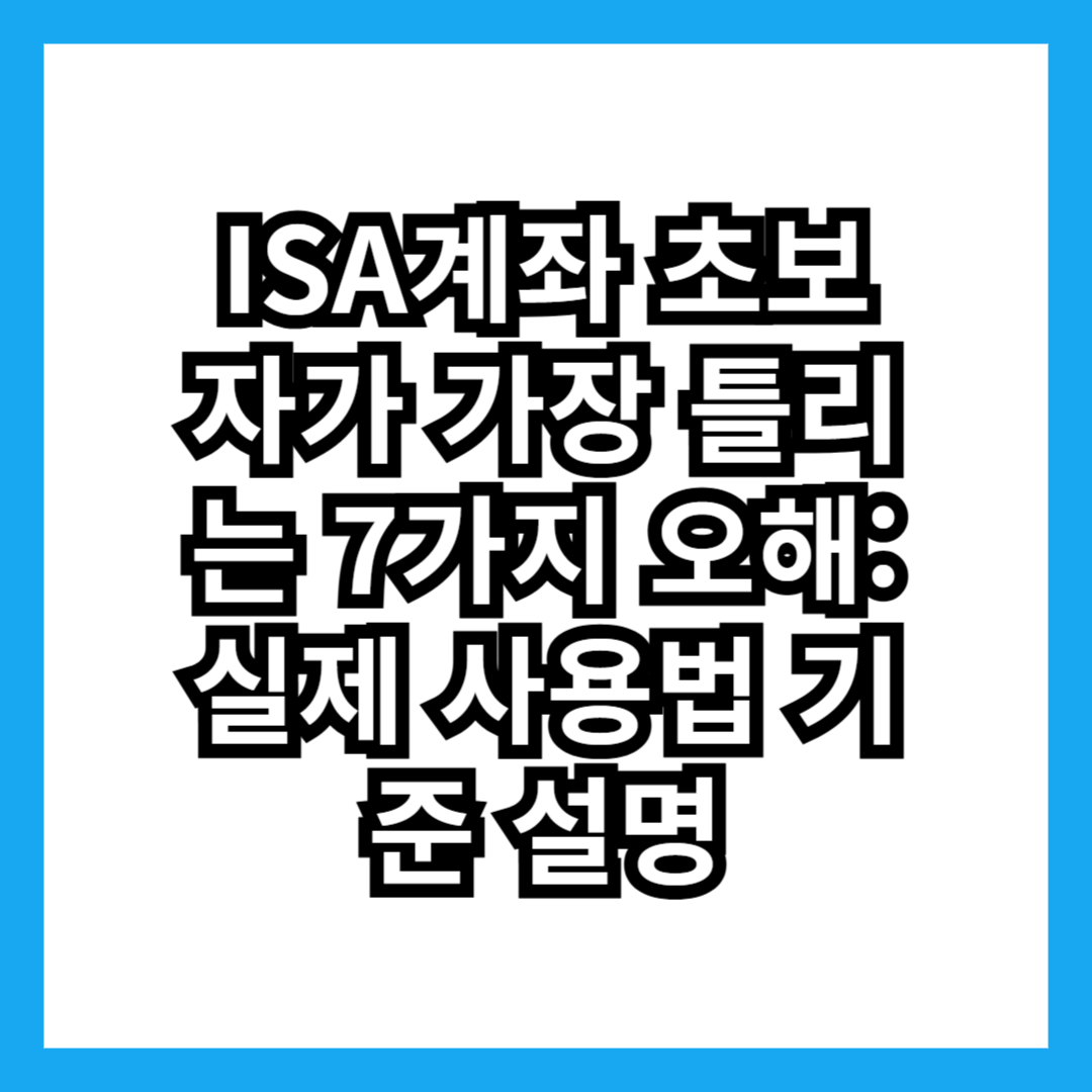 ISA계좌 초보자가 가장 틀리는 7가지 오해: 실제 사용법 기준 설명