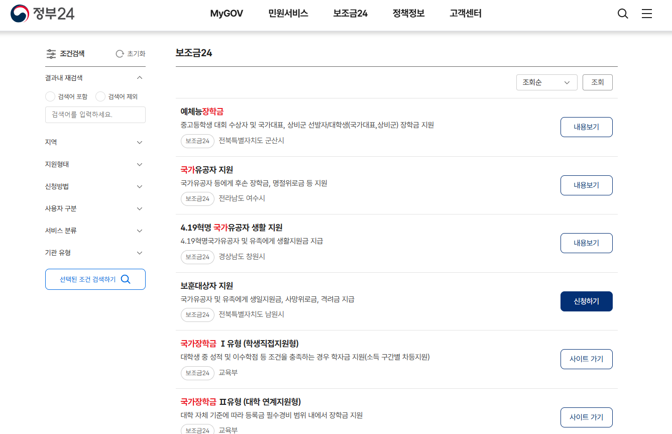 ✅ ‘보조금24’에서 지원금 조회 후 신청